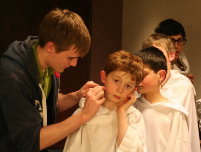ソリストちゃんたちマイクを付けてもらうのにちゃんと並ぶの図。